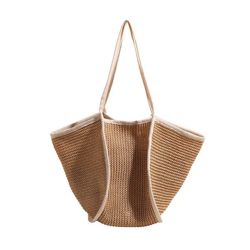 Die gewebte Strohstruktur bringt natürliche Frische, dezente Farbakzente sorgen für modernen Chic. Leicht, geräumig und bequem- dein Begleiter für Stil und Freiheit.